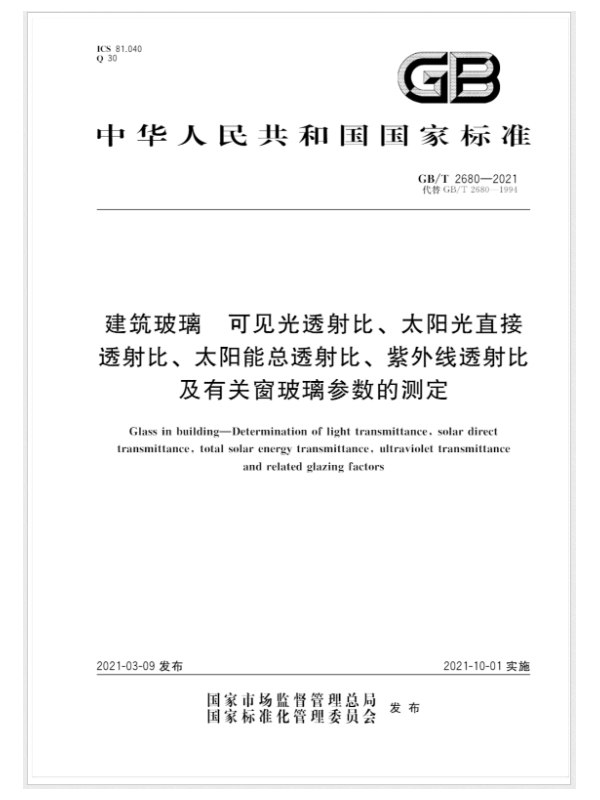 中華人民共和國(guó)國(guó)家標(biāo)準(zhǔn)發(fā)布公告2021年第3號(hào)文件公示,其中GB/T2680-2021《建筑玻璃可見光透射比、太陽光直接透射比、太陽能總透射比、紫外線透射比及有關(guān)窗玻璃參數(shù)的測(cè)定》將于2021年10月…